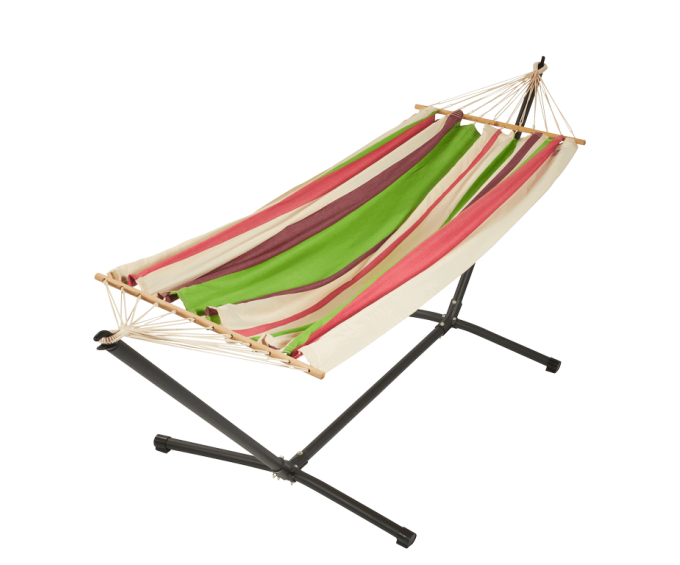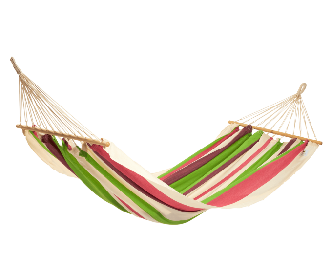 Le hamac GraphiK en Jobekcord est fabriqué au Brésil et possèdent des barres bois de 78.5 cm certifiées FSC 100% et une toile de 140 x 200 cm.