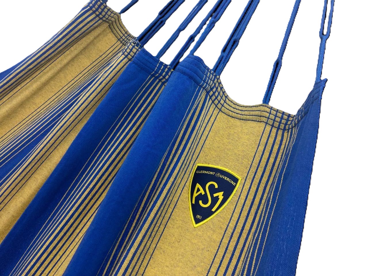 Et si vos moments de détente affichaient fièrement vos couleurs ? Chez Jobek, nous sommes fiers de vous présenter notre hamac aux couleurs emblématiques jaune et bleu de l’ASM Clermont Auvergne, fruit d’un partenariat passionné avec ce grand nom du rugby français. Plus qu’un simple accessoire de repos, le hamac devient ici un véritable support d’identité et de fierté.