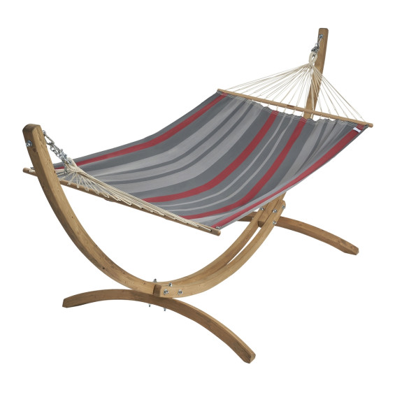 Le hamac inclus est équipé de barres stabilisatrices de 118 cm certifiées FSC®, assurant :